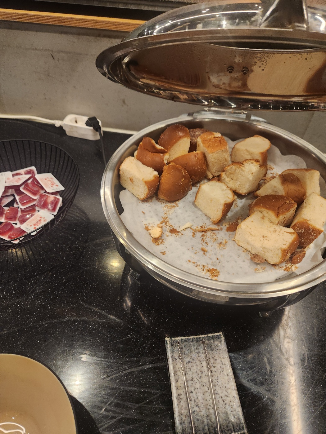- 식전빵은 셀프바에서 제공되며, 딸기잼과 함께 먹으면 단짠단짠 별미입니다.